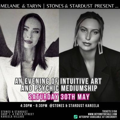 Some guests will receive a combined experience of Taryn’s channelled spiritual artwork accompanied by a channelled message by Melanie. Others will receive a focused experience of either a mini-reading or an individual artistic transmission, each delivered with care, intention and depth.